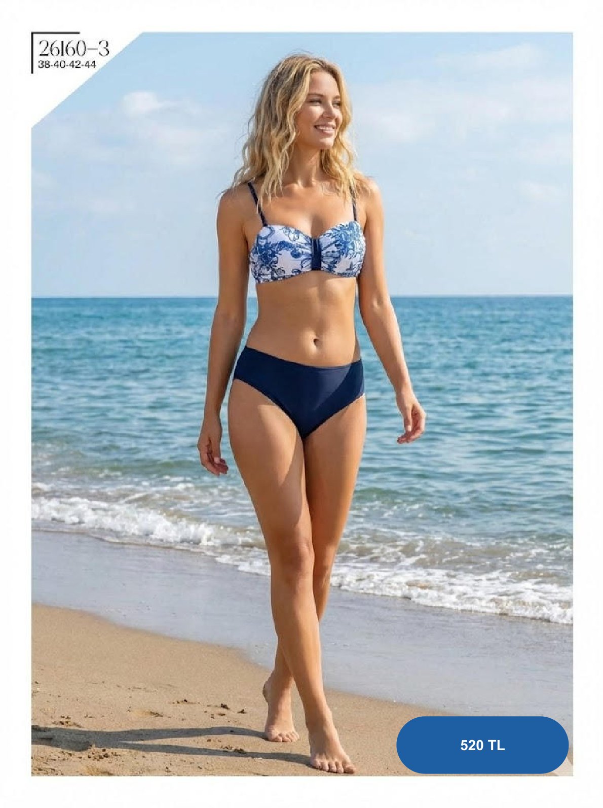 28 Şubat 2026Toptan Mavi Yaprak Desenli Üçgen Bikini Takımı